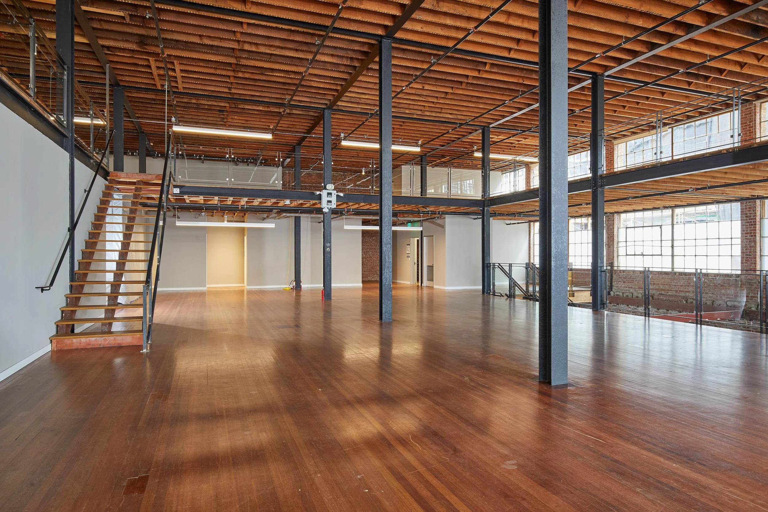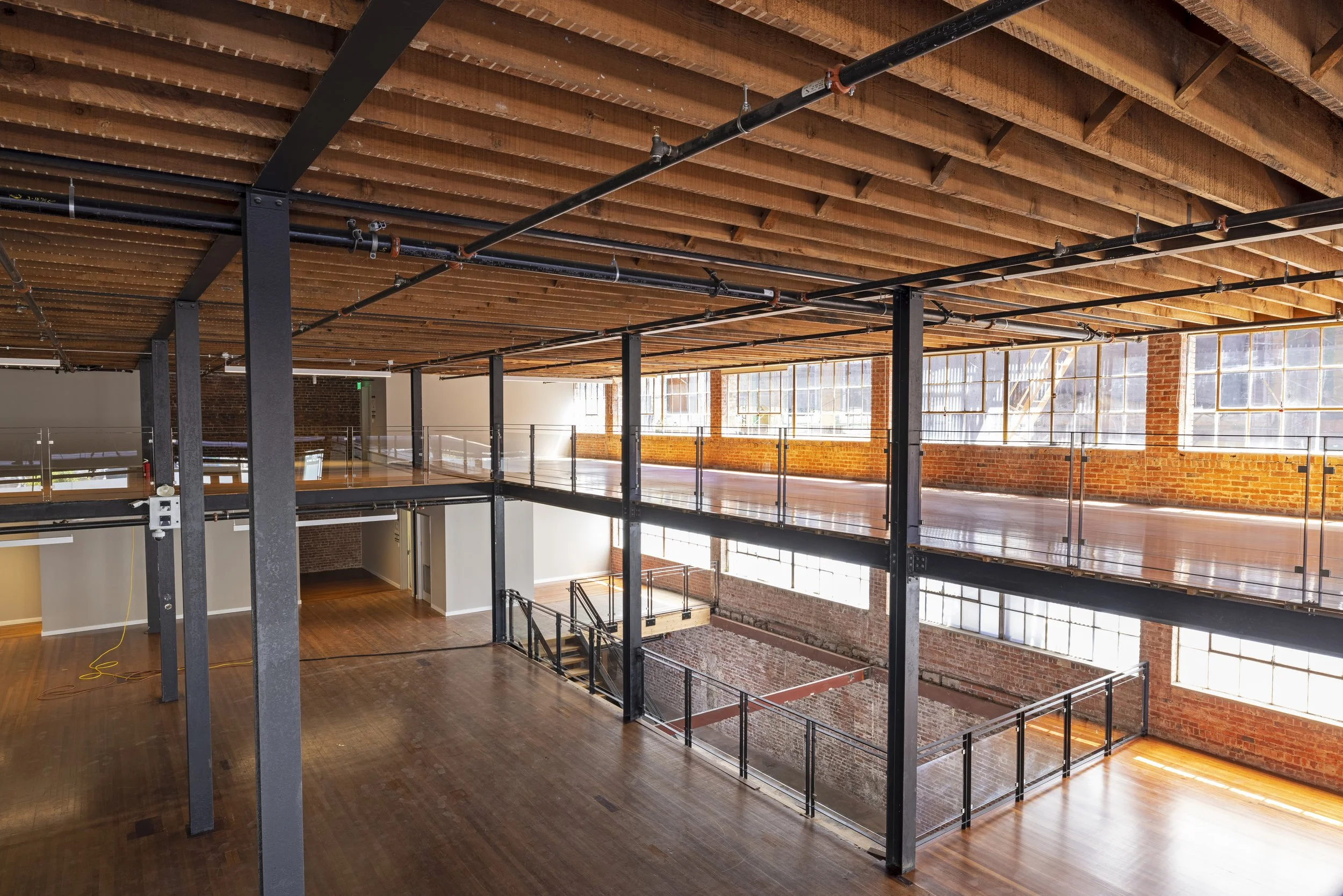 Helped client change the use of this historic warehouse. Turned this underutilized warehouse into a clean slate for potential office tenants looking for a contemporary office space with historic flair. Added a new accessible elevator, along with 2 new stair cores. Opened the space up with a new mezzanine along the exterior wall, and added new restrooms.